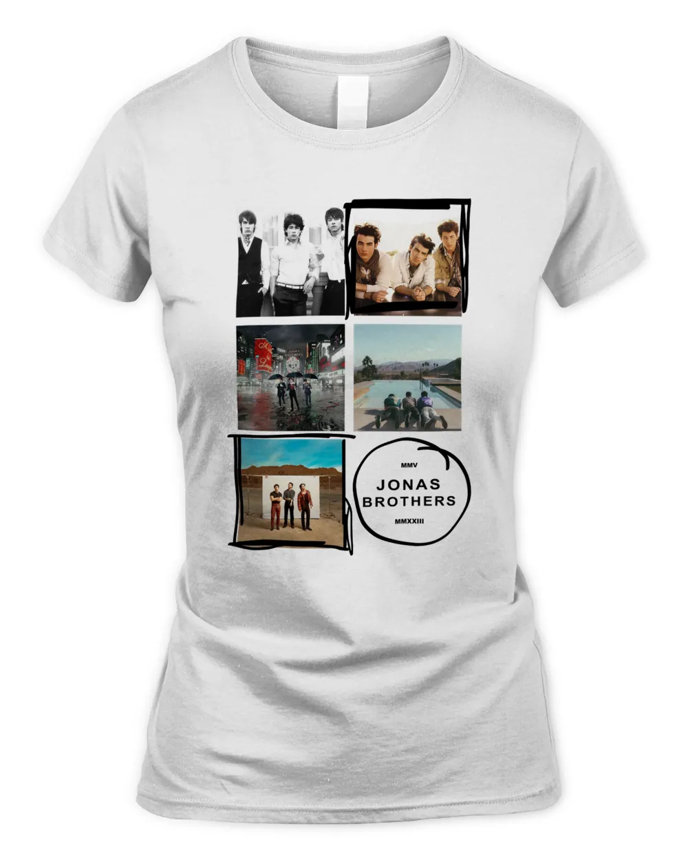 Merch Jonas Brothers Tour 5 Albums Every Night White Shirt Merch Jonas Brothers Tour 5 Albums Every Night White Shirt