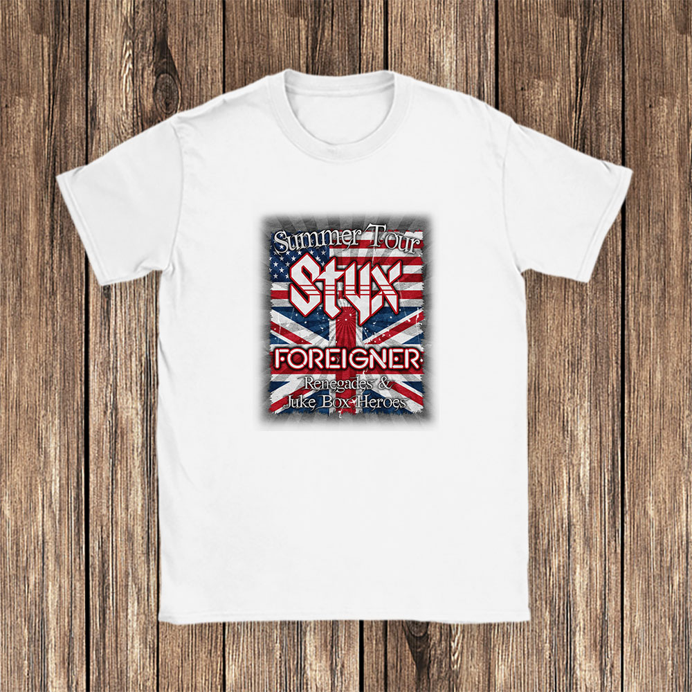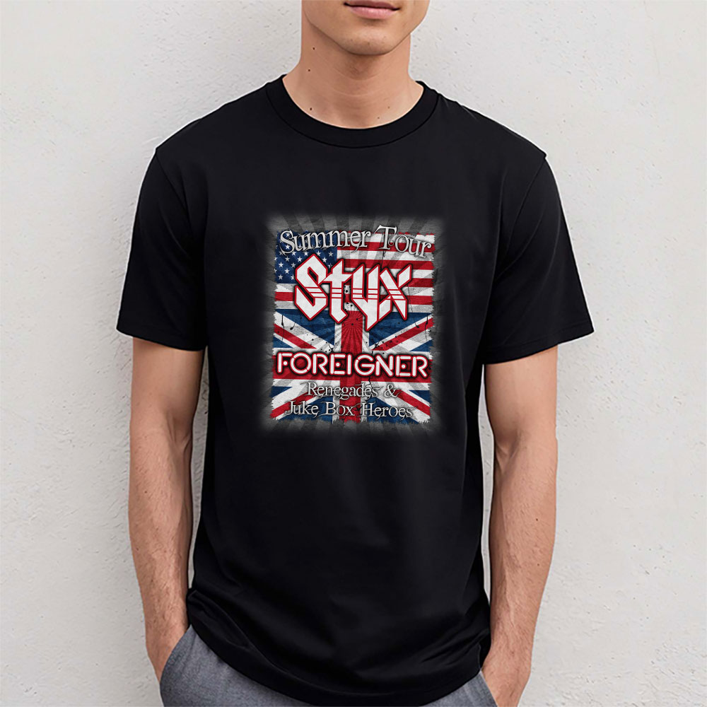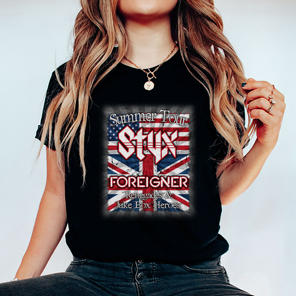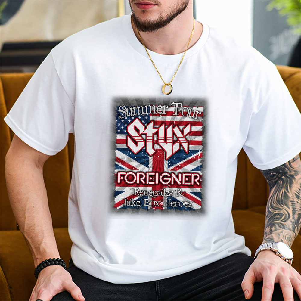 Styx And shirt, Styx And Foreigner Band Summer 2024 Tour Renegades Juke Box Heroes Unisex T-Shirt Cotton Tee