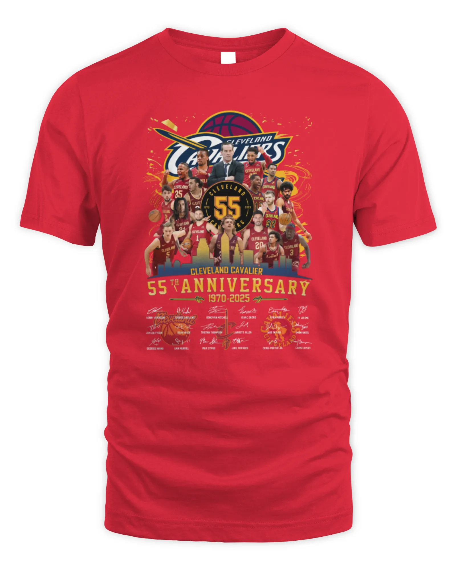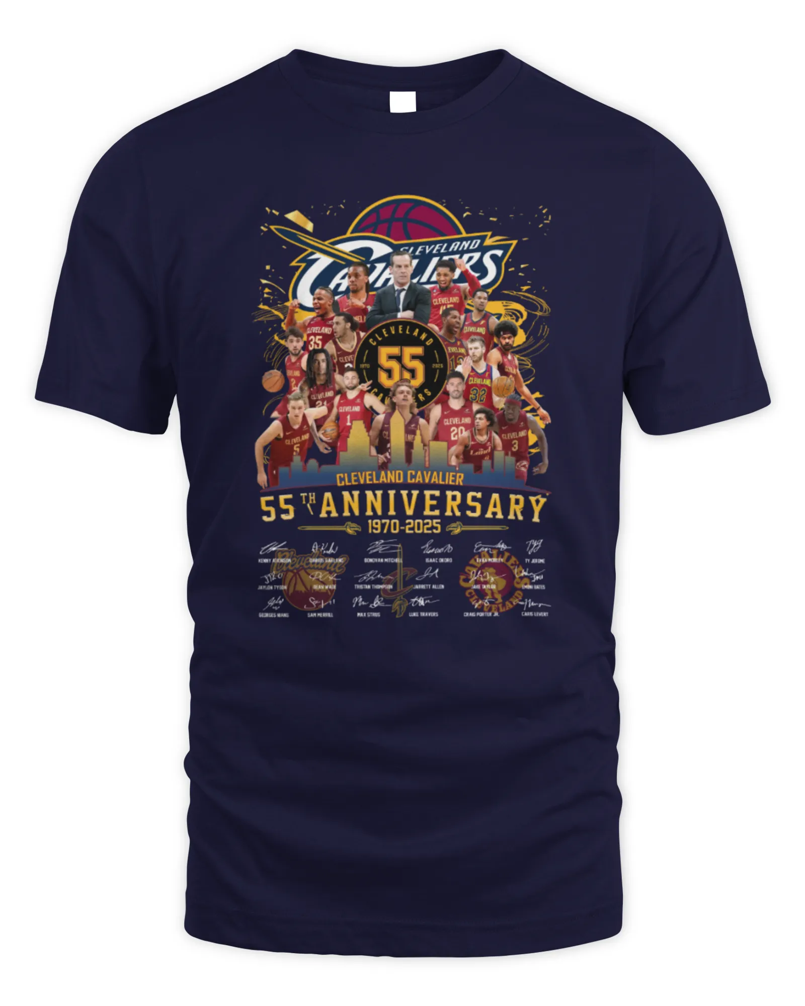 T-Shirt Cleveland Cavaliers 55Th Anniversary 1970-2025 All Roster Signatures T-Shirt Cleveland Cavaliers 55Th Anniversary 1970-2025 All Roster Signatures